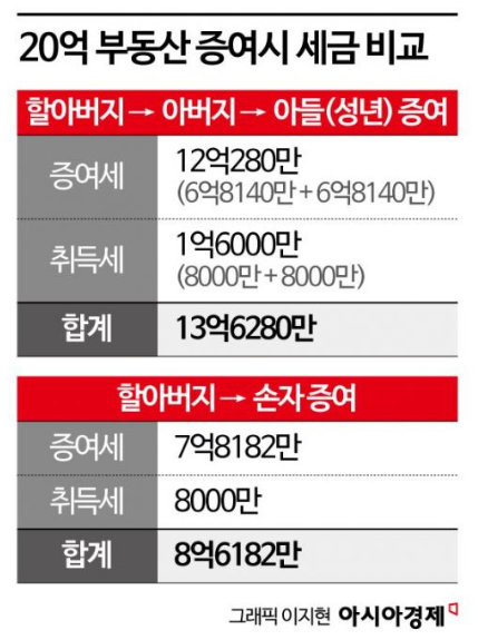 증여세를 두 번(조부모→부모, 부모→자녀) 내는 대신, 30%의 할증 과세가 붙더라도 한 번만 내는 것이 훨씬 저렴하기 때문이다.