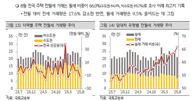 지난 8월, 전국 주택의 월세 비중은 66%로 역대 최고치를 기록했다. 10건 중 7건 가까이가 월세 계약이라는 뜻이다.